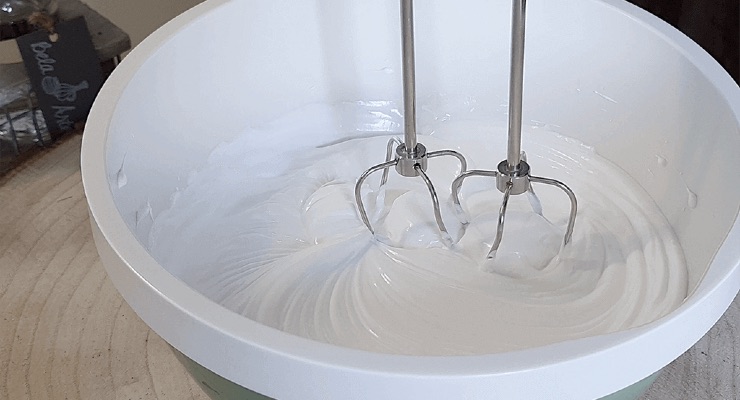 Once the mixture forms stiff peaks, it's important to stop beating, or your meringue could become dry and grainy. You can test if it's ready by turning the bowl upside down. If the meringue stays in the bowl and doesn't slide out, then it's ready to use.